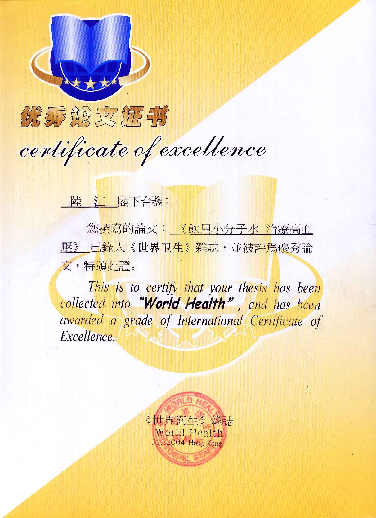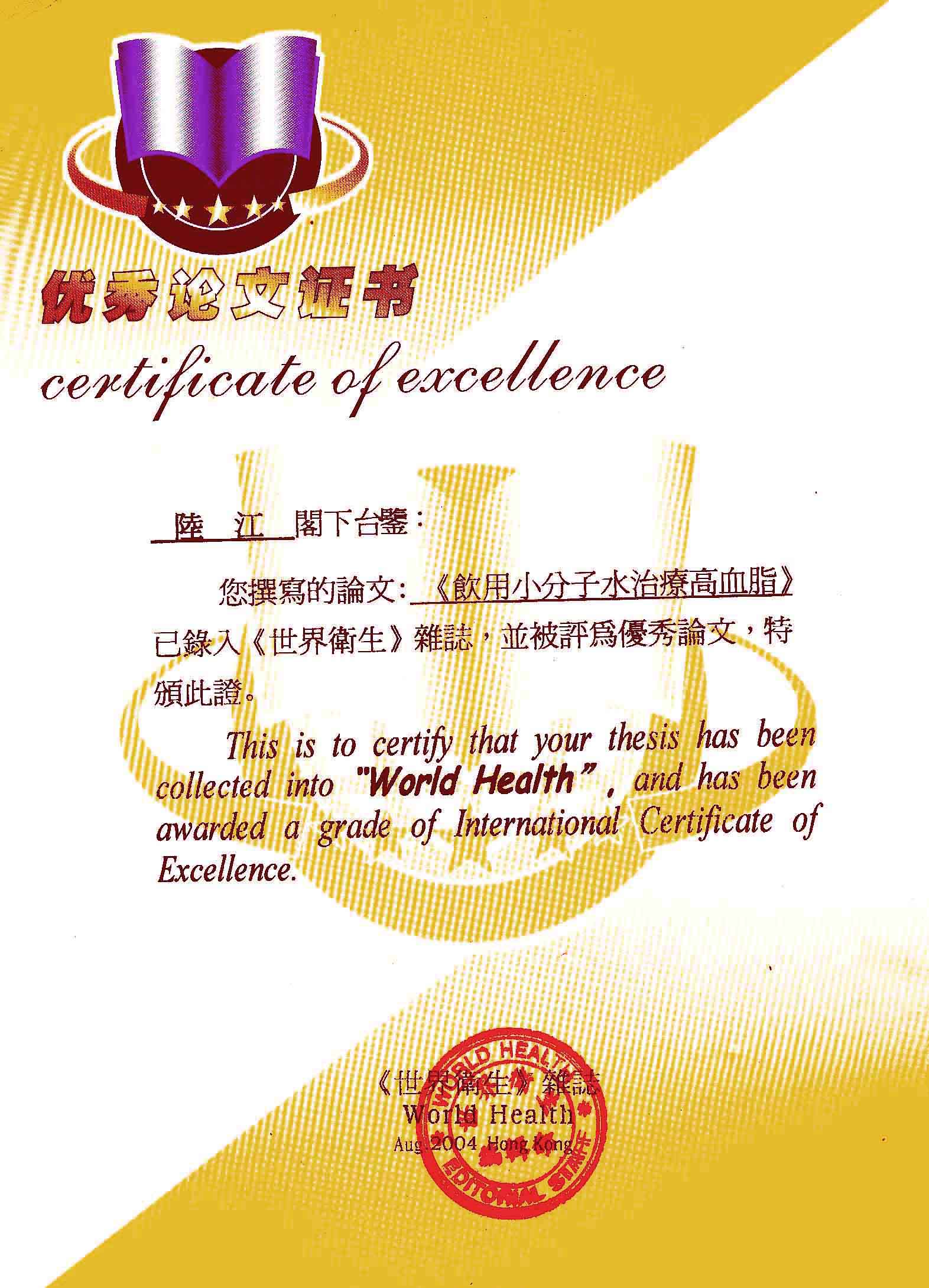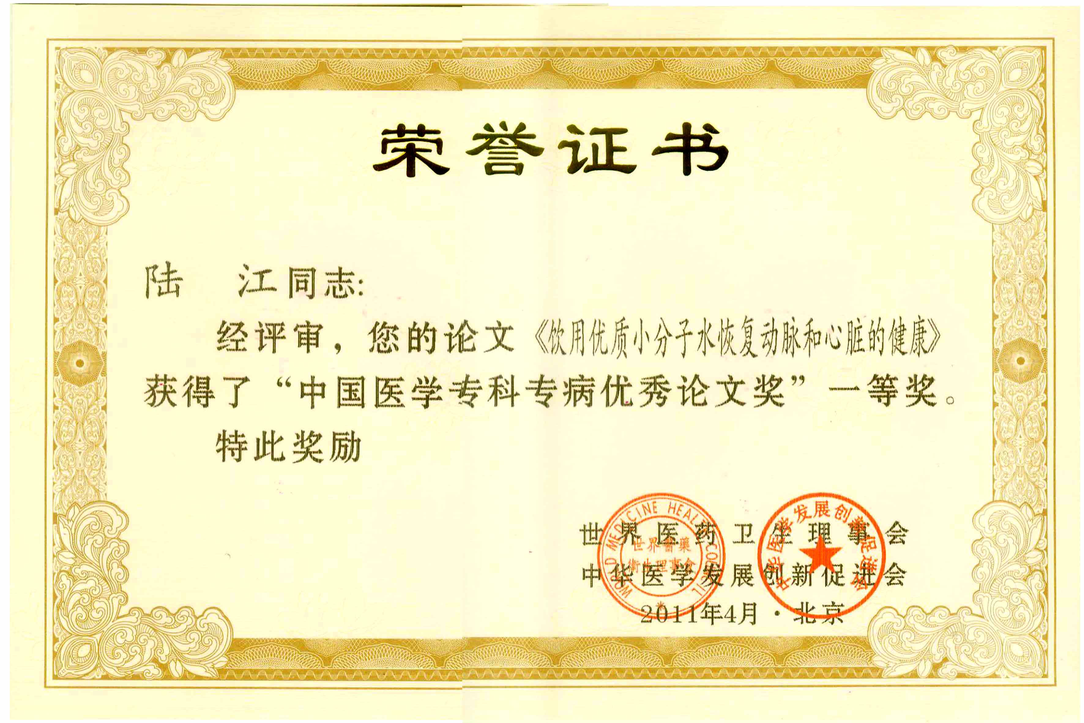 人類幾千年來患以上病癥需終生服藥,幾十年也不能治愈。可是我國南寧的高級工程師陸 江,于1990年想根治高血壓,研究發(fā)明了離子水瓶,處理出微小分子團(tuán)水供飲用,經(jīng)過醫(yī)院臨床試用和專家鑒定,1999年獲中國發(fā)明專利權(quán),產(chǎn)品于2000年投放市場后一直跟蹤調(diào)查,據(jù)全國各地用戶反饋:祛除了高低血壓、糖尿病和冠心病,并使前列腺增生、咽喉炎、鼻竇炎、慢性氣管炎、支氣管炎、矽肺病、哮喘、慢性胃炎、腸炎、慢性膽囊炎、慢性腎炎、腎衰、膀胱炎、便秘、痔瘡、風(fēng)濕性關(guān)節(jié)炎和濕疹皮炎及中風(fēng)后遺癥等病癥不藥而愈。為什么喝微小水能治20多種病?陸 江從1991年德國科學(xué)家發(fā)現(xiàn)細(xì)胞膜水通道僅為2納米獲得啟發(fā),認(rèn)為多種器官患病是因細(xì)胞脫水,不能正常代謝和分裂增殖,才使器官細(xì)胞減少致衰弱萎縮而形成細(xì)胞缺水性病癥。22年來的實(shí)踐有力地支持了“細(xì)胞脫水致病”這一重要論點(diǎn),表明喝微小水可滿足細(xì)胞的生理需求,補(bǔ)水就能祛病,是生命科學(xué)新亮點(diǎn)。